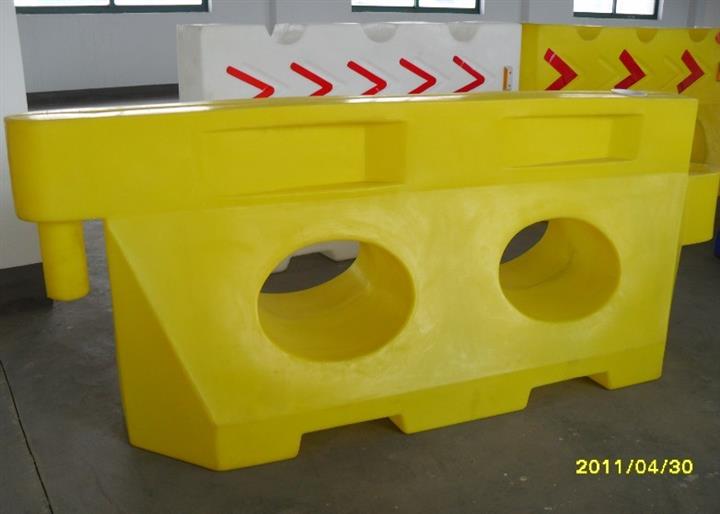 2.壁厚不同:滚塑水马的内壁厚度一般在4-5mm之间,而吹塑水马只有2-3mm,不仅减轻了吹塑水马的重量,但同时也降低了原材料成本,*主要是降低了水马的防撞能力。